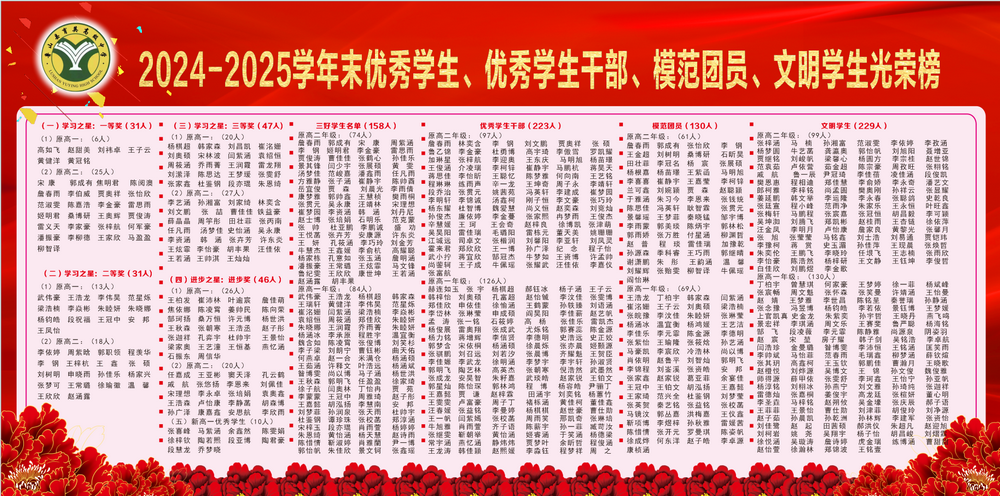 育英高中2024——2025学年末三好学生、优秀学生干部、模范团员、文明学生光荣榜